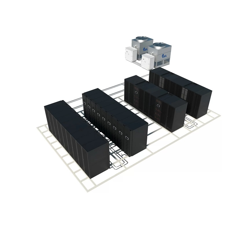The data center adopts the Envicool XMint high-efficiency evaporative cooling composite multi split air conditioning solution, which utilizes Innovent's unique XFreeCooling high-efficiency variable frequency pneumatic heat pipe technology, liquid pump natural cooling technology, evaporative condensation technology, multi split adaptive refrigeration technology and other advanced refrigeration technologies. Combined with end of pipe air conditioning equipment, it can adaptively adjust according to outdoor working conditions, accurately control system pressure and temperature, and achieve high efficiency and energy saving during transitional seasons, effectively improving the annual energy efficiency ratio of the refrigeration system. It also adopts refrigerant leakage detection, redundant configuration and other methods to greatly enhance the reliability of the solution.